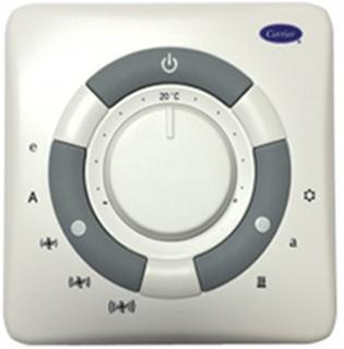 С весны 2013 г. компания Carrier запустила в производство проводные пульты управления фанкойлами новой серии. Пульты сохранили свой функционал, изменился их внешний вид, изменилась электронная начинка и конструкция, что ещё больше облегчает монтаж пульта на стене. Кроме того в пультах исчезли подвижные части управления скоростями вентилятора фанкойла, что ещё больше повысило их отказоустойчивость. Внешний вид пульта нового поколения представлен на фото ниже. Всё описание функционала пультов управления Carrier представленное далее в статье - также актуально и для пультов нового поколения.