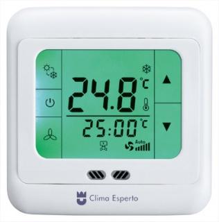 Функции: вкл./выкл., регулятор скорости вентилятора в автоматическом или ручном режиме, управление 3-х ходовым клапаном, термостат, режим охлаждение-обогрев.