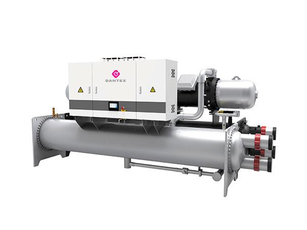 Модульные чиллеры DANTEX DN-630VSCLWE/SM с водяным охлаждением конденсатора, предназначенное для систем охлаждения в крупных зданиях и промышленных объектах. Особенностью данной серии является применение инверторных винтовых компрессоров и испарителя на падающей пленке, что обеспечивает супер высокую энергоэффективность и точную регулировку мощности в зависимости от нагрузки.