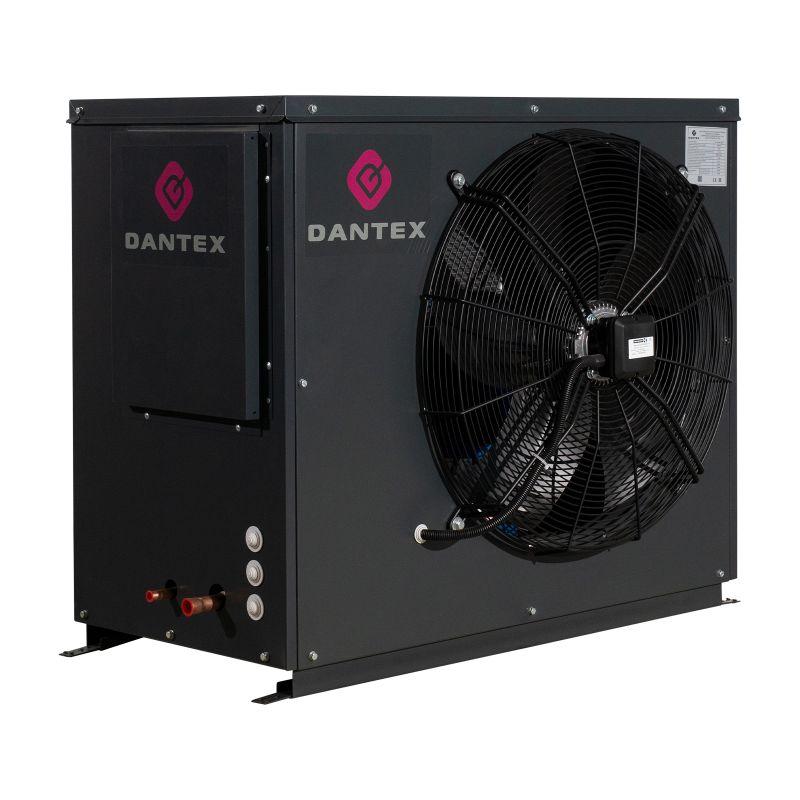 ККБ DANTEX DK-VSR020BUSOHF/11 включает: спиральный компрессор, конденсатор с воздушным охлаждением, малошумные осевые вентиляторы, обратные клапаны и шаровые краны. В стандартную комплектацию также входит полный набор элементов для подключения к теплообменнику испарителя — в него входят фильтр‑осушитель, смотровое окно, терморегулирующий вентиль и электромагнитный клапан.