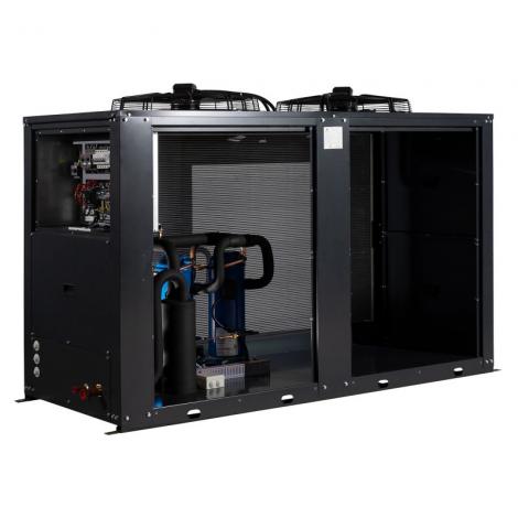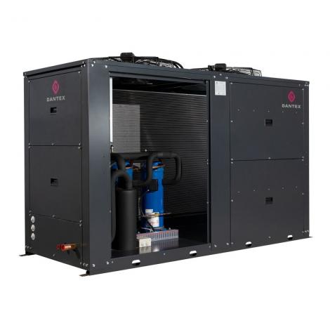 ККБ DANTEX DK-VSR062BUSOHF/12 включает: спиральный компрессор, конденсатор с воздушным охлаждением, малошумные осевые вентиляторы, обратные клапаны и шаровые краны. В стандартную комплектацию также входит полный набор элементов для подключения к теплообменнику испарителя — в него входят фильтр‑осушитель, смотровое окно, терморегулирующий вентиль и электромагнитный клапан.