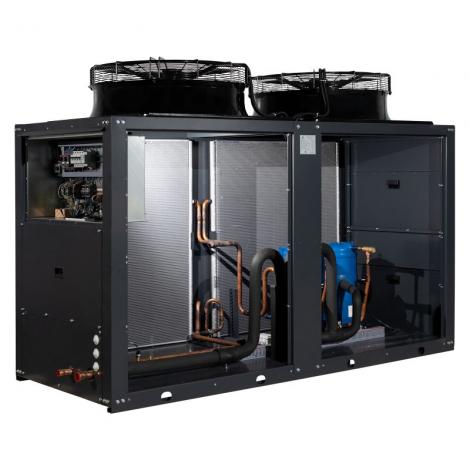 ККБ DANTEX DK-VSR085BUSOHF/12 включает: спиральный компрессор, конденсатор с воздушным охлаждением, малошумные осевые вентиляторы, обратные клапаны и шаровые краны. В стандартную комплектацию также входит полный набор элементов для подключения к теплообменнику испарителя — в него входят фильтр‑осушитель, смотровое окно, терморегулирующий вентиль и электромагнитный клапан.