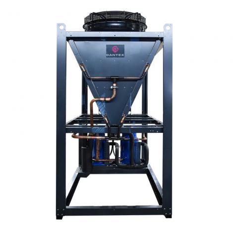 ККБ DANTEX DK-VSR170BUSOHF/12 включает: спиральный компрессор, конденсатор с воздушным охлаждением, малошумные осевые вентиляторы, обратные клапаны и шаровые краны. В стандартную комплектацию также входит полный набор элементов для подключения к теплообменнику испарителя — в него входят фильтр‑осушитель, смотровое окно, терморегулирующий вентиль и электромагнитный клапан.